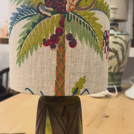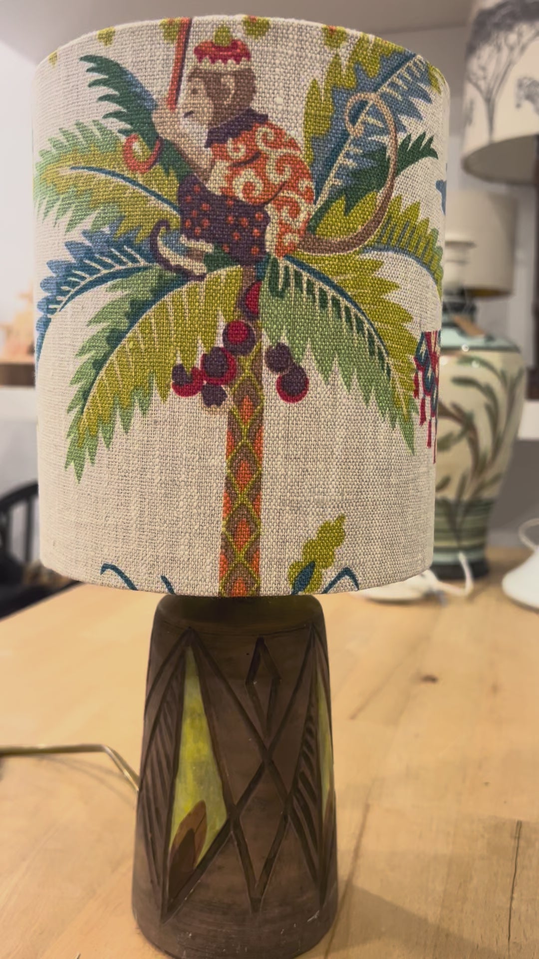 Lampshade is handmade features monkeys under parasols and palms, and will create warm and cosy illumination to any small space.